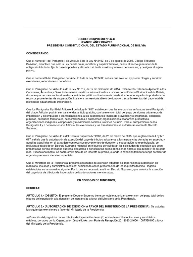 Application Name: Decreto Supremo 4246 Doc Bolivia Bolivia Gobierno